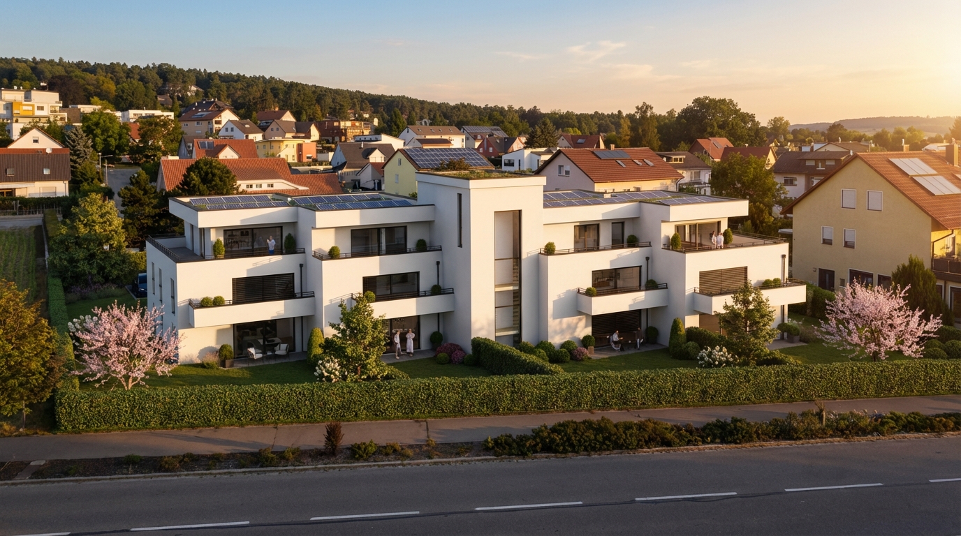 Weil unser Neubau KfW 40 mit QNG erfüllt, bekommt ihr einen Förderkredit bei ab 1,4 % statt über 3,5 %. Familien mit Kindern erhalten über KfW 300 sogar bis zu 270.000 € – das deckt bei kleineren Einheiten den kompletten Kaufpreis.